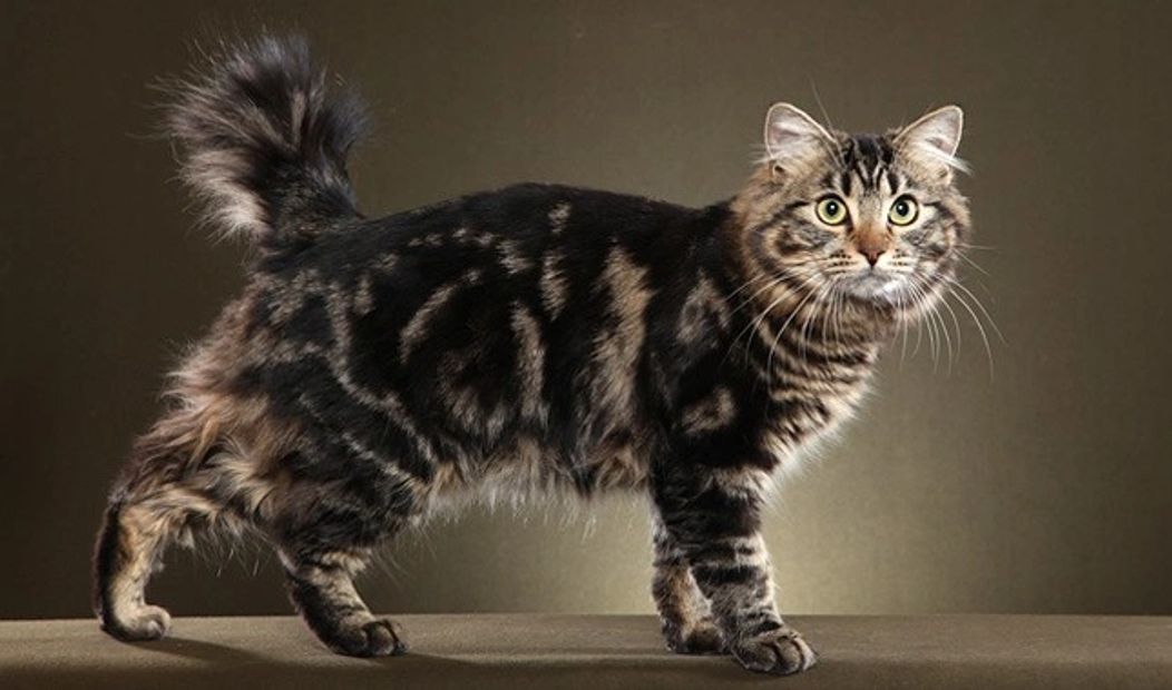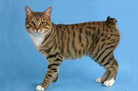 Reminiscent of the wild cats, the American Bobtail is a medium-large to large, naturally occurring short-tailed cat, native to North America. It is a well-muscled, solid cat with the power and grace of an athlete. It has the gaze of the hunter and the rolling gait that, along with its naturally bobbed tail, give it the resemblance to the wild cats but with the loving affection and intelligence of the domestic cat. No two tails are identical so they are truly the hallmark of the individual and are proudly held above the back when the cat is alert, often wagging to express the cat's mood. Developed by nature to survive in its native environment, the American Bobtail has above average intelligence and is a breed of moderation rather than extremes taking up to 3 years to reach full maturity.