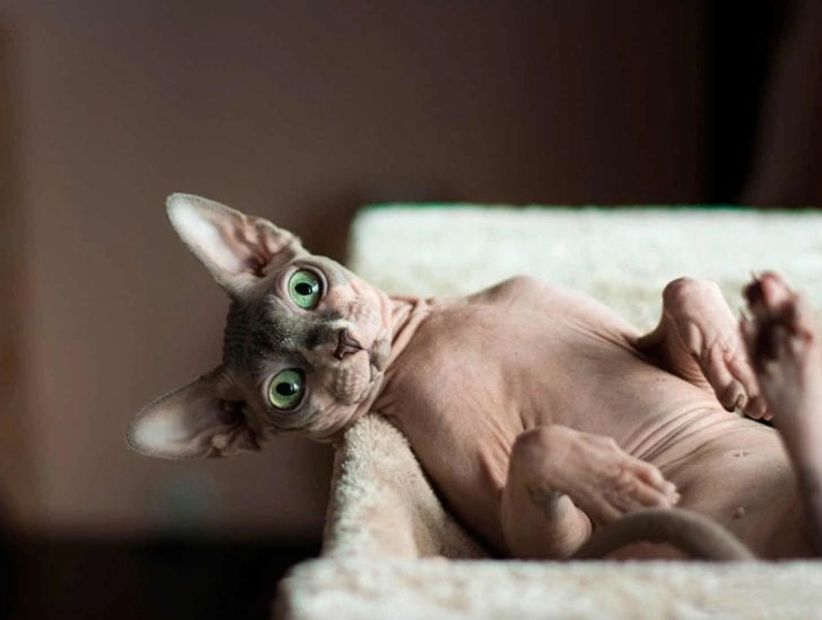 One of the favorite activities of the bald cat is to bask on the windowsill in the sun or near a radiator. However, the owner must be very careful: these cats can easily get burned, especially when they are in the sun.
